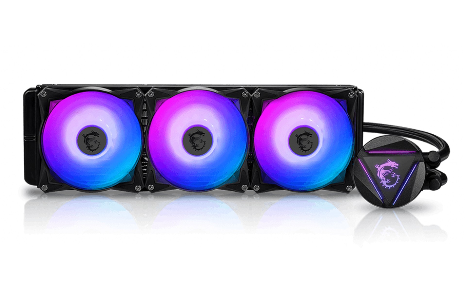 Chất tản nhiệt hấp thụ nhiệt từ tấm đế khi nó di chuyển qua tấm ngăn nước. Sau đó, nó tiếp tục di chuyển qua hệ thống và đi lên qua một trong hai ống đến bộ tản nhiệt. Bộ tản nhiệt tiếp xúc chất lỏng với không khí, giúp làm mát và các quạt gắn vào bộ tản nhiệt sau đó sẽ di chuyển nhiệt ra khỏi bộ làm mát. Sau đó, chất làm mát vào lại ngăn nước và chu trình bắt đầu lại.
